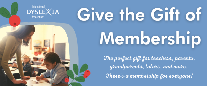 With memberships starting at just $50, this makes a great holiday gift for parents and grandparents of individuals with dyslexia, or for your child’s teacher or tutor! CLICK HERE to learn how to give the gift of membership.