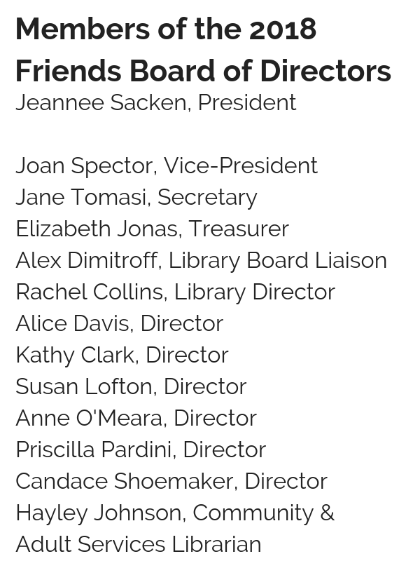 - While you are at the library this season, pick up a Friends donation form and join us! Your membership donation is tax-deductible, so make a contribution before December 31st. Contact the Friends with any questions at shwd.libraryfriends@gmail.com