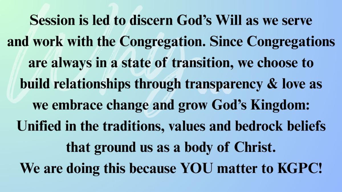 The Members of Session are always open to have conversations about what is happening in the church. Let's Talk!