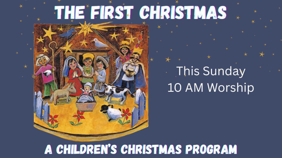 What the adults do for the community, the children will do for us, as they, too, have been hard at work preparing a special event to share the Christmas message this Sunday. The First Christmas, a children’s Christmas program, will recap the Christmas story with narration, songs, and instruments. Come to hear and see this story through the eyes of a child.