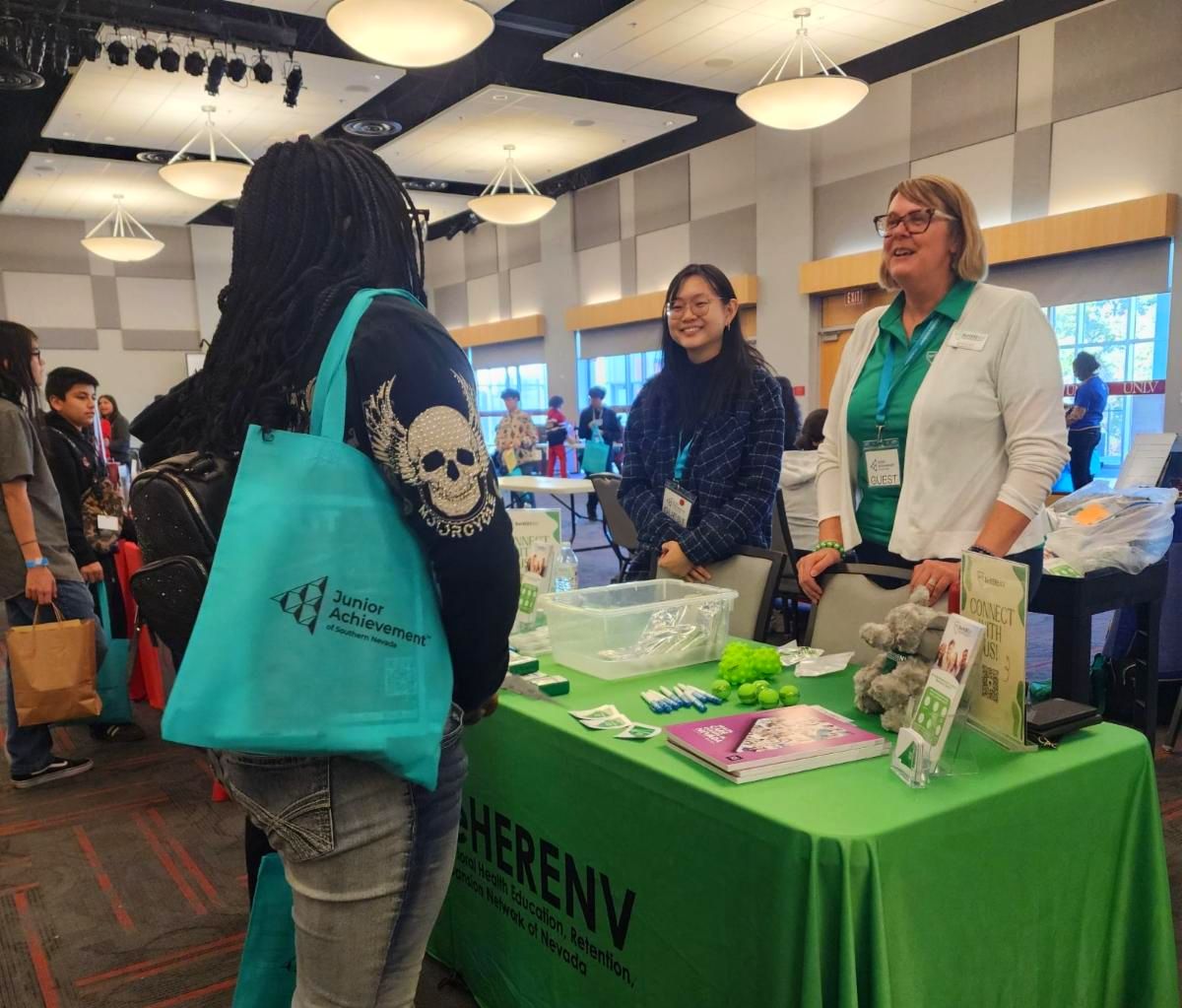 The BeHERE NV team was thrilled to engage with Clark County middle and high school students during the JA Inspire Fair. In addition to the career fair, over 250 students attended BeHERE’s workshop “Behavioral Health: Careers that Change Lives!” During the workshop, students used the Healthcare Careers in Nevada books to learn about different pathways in behavioral health. After sharing what they learned with their peers, they left inspiring notes for the next group of students as a reminder to always have compassion for oneself and others! | |