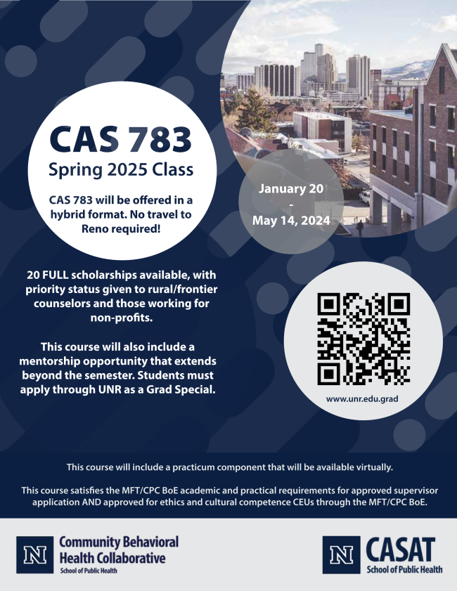 BeHERE NV Partners with UNR Community Behavioral Health Collaborative to Expand MFT and CPC Supervisors in Nevada | BeHERE NV is excited to partner with the UNR Community Behavioral Health Collaborative on this initiative to increase the number of MFT and CPC supervisors in Nevada. To apply for the course, please click this link: https://unr.az1.qualtrics.com/jfe/form/SV_eA4hMYCNrOcSj0q. For more information about the course and scholarship opportunities, please email Megan Weller at meganweller@unr.edu. | |