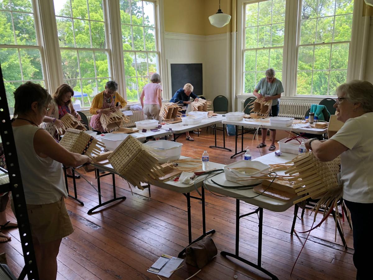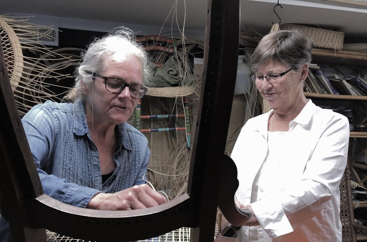 Margaret Goode (right) chair caning with Waterford Craft School instructor Pamela Foster