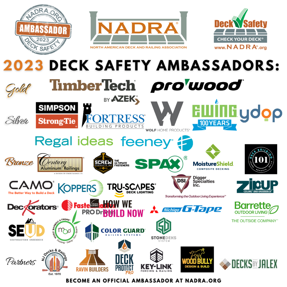 Kyle Blindauer, Color Guard Inc, "NADRA's deck safety initiative is important to Color Guard because safety is always our primary focus. We want the industry and our customers to know that we are committed to manufacturing a safe and sturdy product as well as standing behind industry safety initiatives."