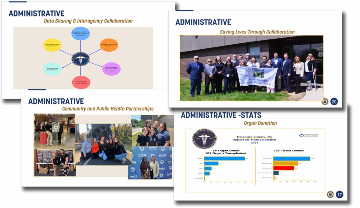 Educational partnerships with the Pennsylvania Institute of Technology and other local institutions have expanded student exposure to careers in forensic science, while DCOME has deepened its participation in regional death review teams and bereavement support services.