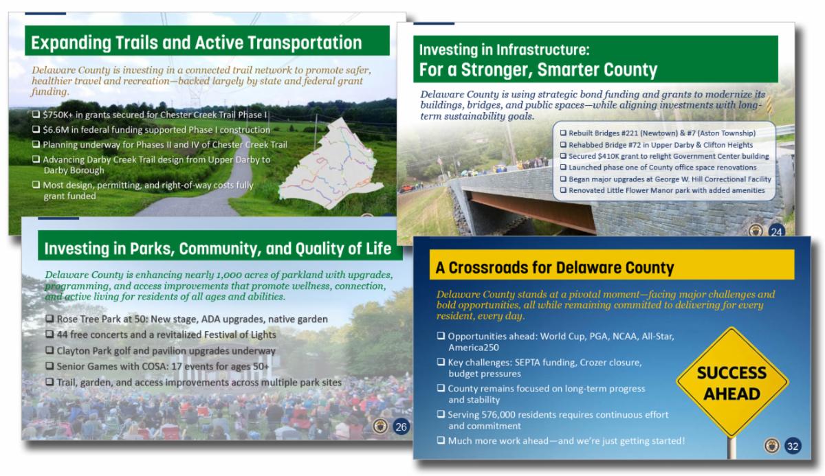 “This presentation is only a glimpse of what’s being done every day,” noted Delaware County Council Chair Dr. Monica Taylor. “Across departments, our team is working hard to improve the lives of residents throughout Delaware County—whether it’s investing in infrastructure, expanding access to health and human services, supporting public safety, or planning for the future through transparency and community engagement. We’re proud of the progress we’ve made, and we remain committed to building a better future for Delaware County.”