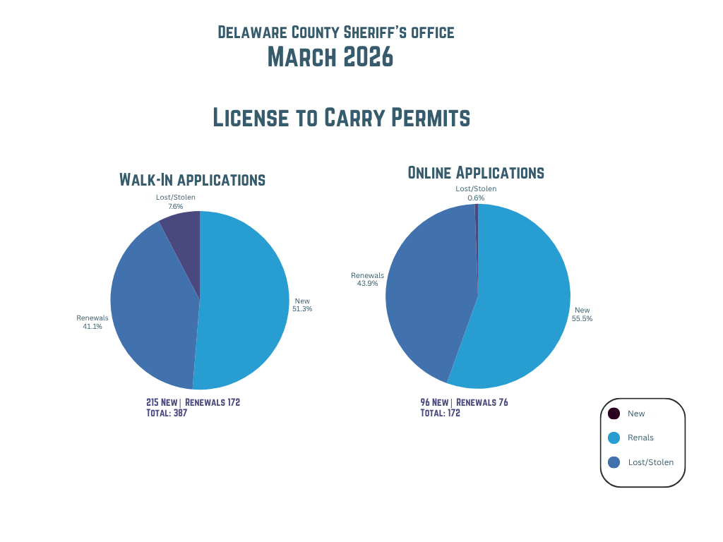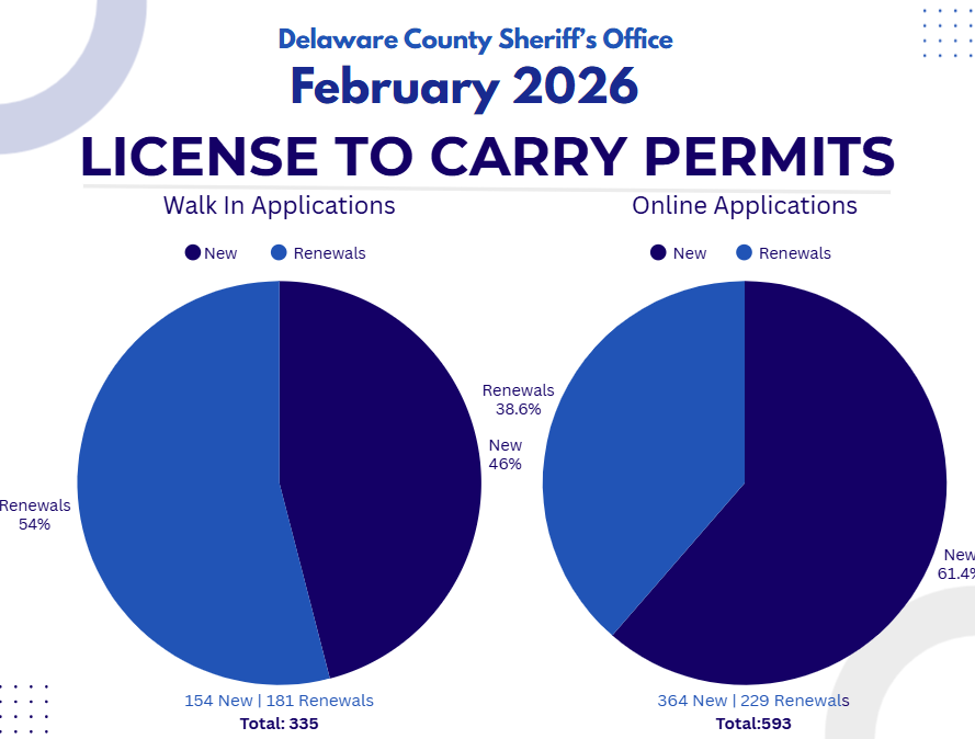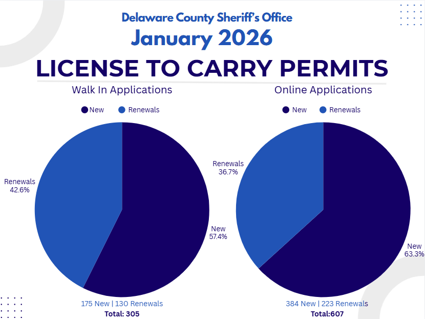 We have taken meaningful steps to modernize technology and improve access to services. License to Carry (LTC) applications and renewals can now be accessed from the convenience of a smartphone through the introduction of a QR code—making the process faster and more user-friendly. In addition, permit holders now receive notices electronically via email, supporting the Delaware County Green Initiative while improving communication and efficiency.