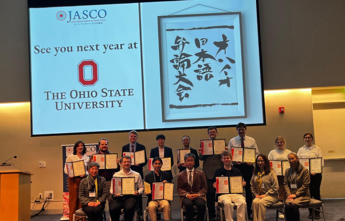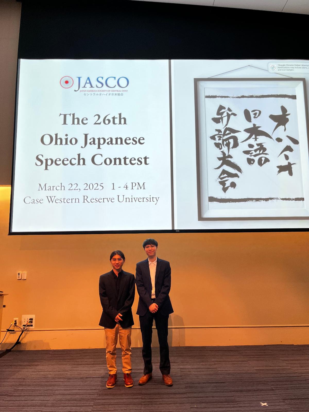 | | Meeting with Japanese Exchange Students | | On March 28, 2025, CWRU students from Japanese classes participated in a cultural exchange meeting with Japanese exchange students from Kindai University. Students had conversations with the Japanese students in both languages. Many students said they felt very encouraged that they were able to use Japanese outside of class with other Japanese speakers. We look forward to hosting another cultural exchange meeting in the next school year! | | JASCO Speech Contest at CWRU | |