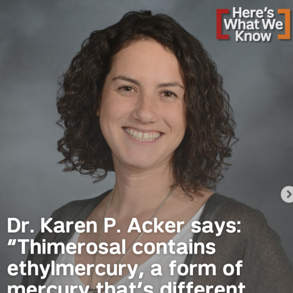 Dr. Karen Acker explains that thimerosal contains a type of mercury called ethylmercury, which is very different from methylmercury, the kind found in some fish that can build up in the body. Ethylmercury breaks down quickly and doesn’t stay in the body. Read more here!
