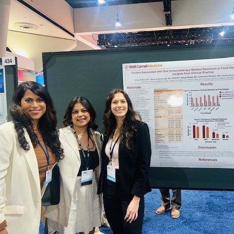 | | Weill Cornell Medical College student, Eirene Fithian, and Drs. Perdita Permaul and Priya Katari presented their poster titled, "Factors Associated with Oral Immunotherapy-Related Reactions in Food Allergy Management: Insights from Clinical Practice" at the American Academy of Allergy, Asthma, and Immunology (AAAAI) annual meeting held in San Diego, California. | | | |