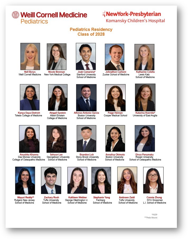 We are thrilled to welcome the class of 2028 residents to our Pediatrics team! This is an exciting time in your medical journey, and we are honored to have you join us. Over the coming months, you'll have the opportunity to grow, learn, and make lasting contributions to the care of our youngest patients and their families.