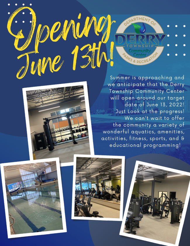 New Derry Township Community Center is opening on June 13, 2022! Click this link.