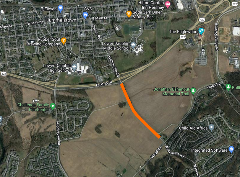 The Jon Eshenour Bike trail crossing at Waltonville road will be closed starting May 23, 2022, during the construction of Hershey West end/Roundabout.