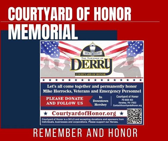 In the Board of Supervisors meeting on May 10, 2022, Randy McKillop presented to the Board the development of the Derry Township Courtyard of Honor on the lands east of the Hershey Volunteer Fire Company building. Click this link for more information.