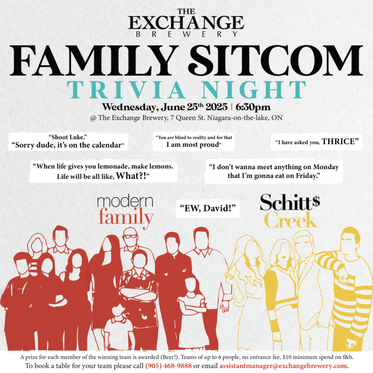 Visit The Exchange Brewery for the first themed trivia event of the summer. They're kicking it off with your favourite dysfunctional families from two of TV's most iconic families: Modern Family and Schitt's Creek.