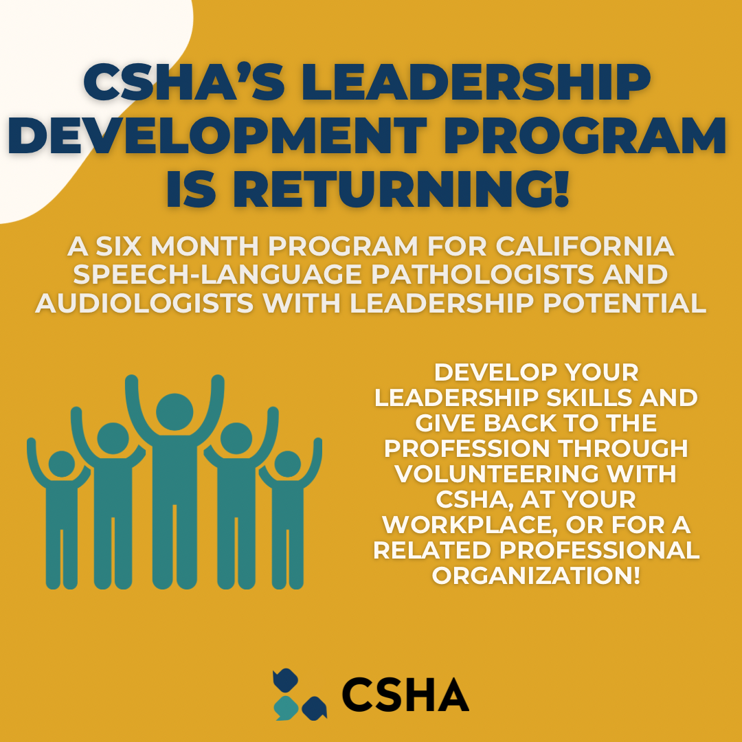 Our six month Leadership Academy is designed for California speech-language pathologists and audiologists who have a passion for leadership. This unique program, in partnership with ASHA’s Leadership Development Program, will help you enhance your leadership skills and make meaningful contributions to the profession.