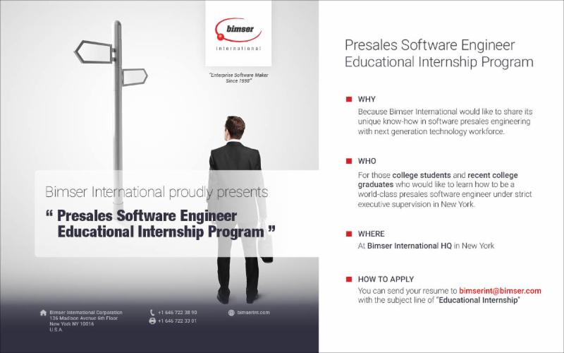 EDUCATIONAL PRESALES SOFTWARE ENGINEERING INTERNSHIP PROGRAM AT BIMSER INTERNATIONAL, NEW YORK