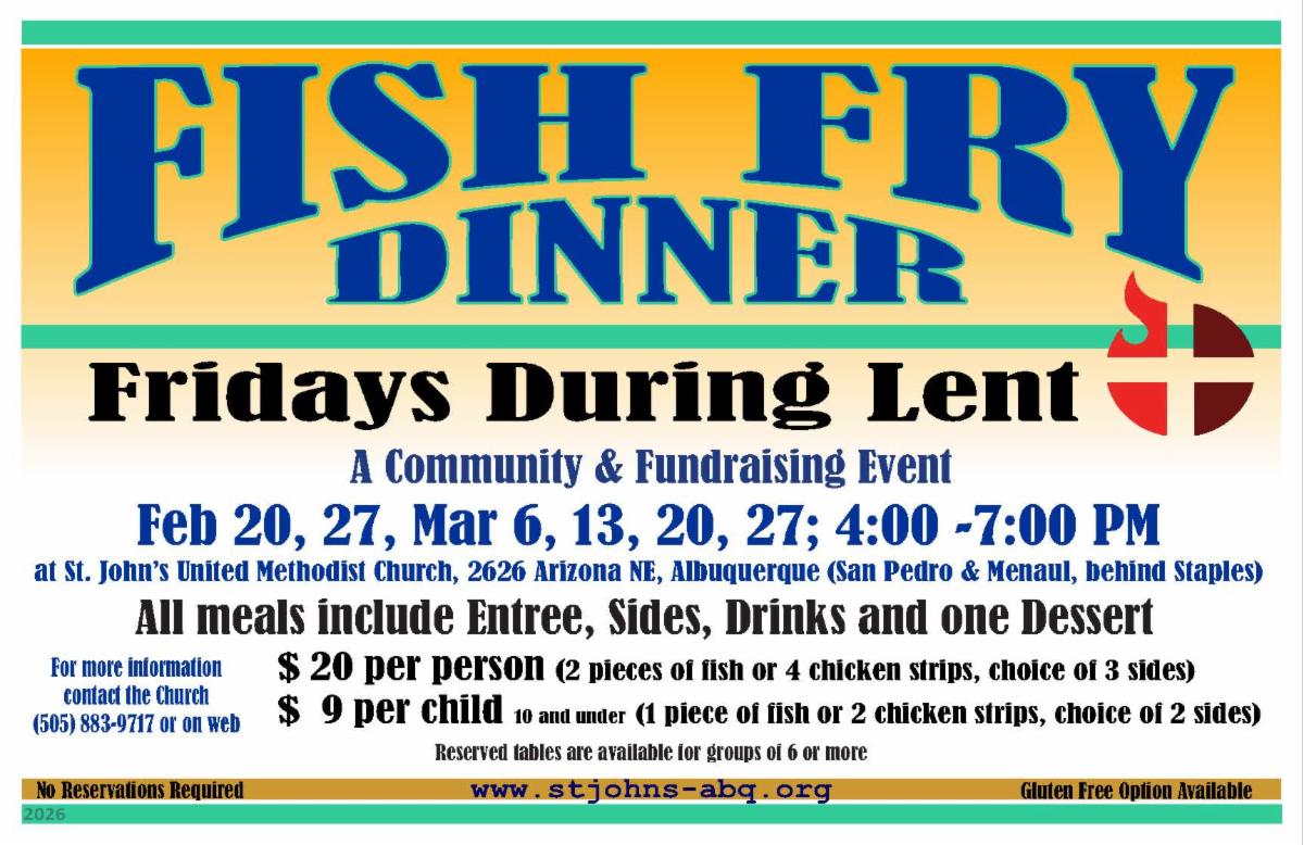 Missed the Fish Fry Dinner last Friday? Don’t worry! You still have five more chances to enjoy this beloved community tradition! Join us each Friday from February 27 through March 27, 4:00pm – 7:00p.m. in the Family Life Center, for a delicious meal featuring fried or baked fish, tasty sides, and chicken tenders for those who prefer something different.