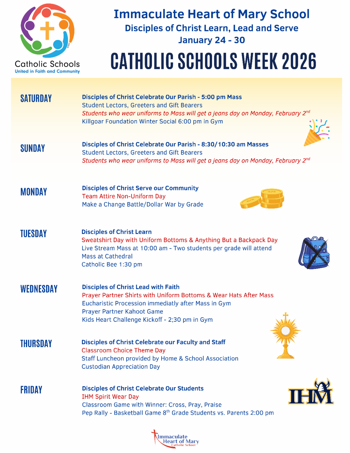 - School and organization shout-outs between the 1st and 2nd periods