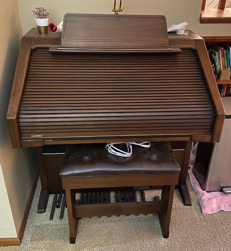 This beautiful organ is for sale. It is 44.5" high; 42.5" wide; and 29.5" deep. Contact Crystal for more information. | |