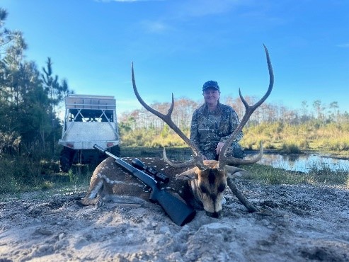 In addition to alligator and hogs they also offer trophy whitetail deer and exotics to include Blackbuck, Axis buck, Water buffalo and African Watusi on their private ranch. On both whitetail and exotics there is a $225 daily rate for hunters and $100 daily rate for observers that includes lunch.