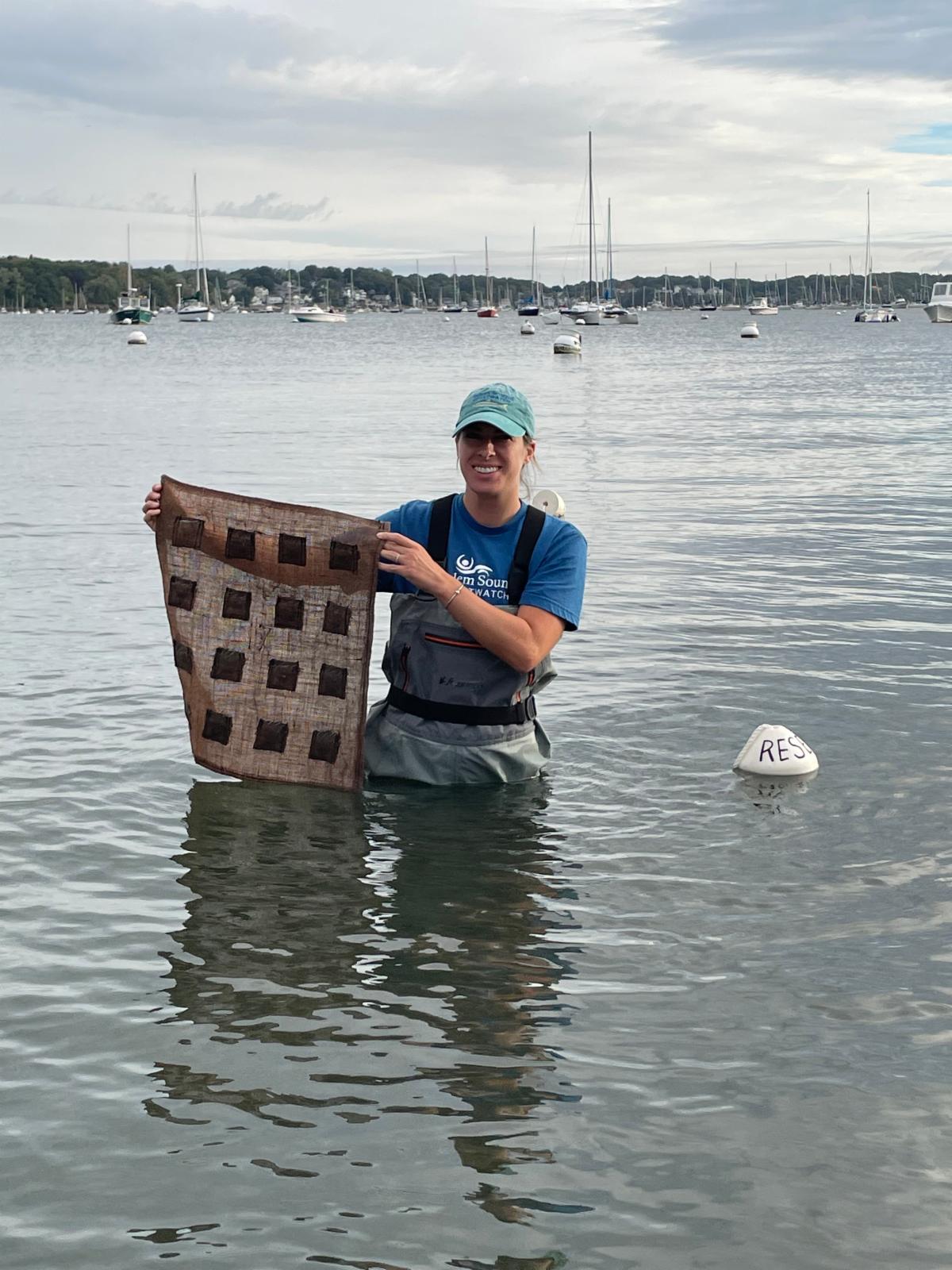 | | Pilot Eelgrass Restoration is Underway | | Photos from left to right: Jill Carr holding a cup of about 5,000 eelgrass seeds, ready for planting. Baggies filled with sediment and eelgrass seeds awaiting deployment at the Nahant pilot site. The planting team finishing up the plot in Beverly | | MassBays Habitat Restoration Program Manager , Jill Carr has partnered up with the Regional Coordinators from the Upper North Shore, Lower North Shore, Metro Boston, and South Shore regions to implement the planting of four pilot restoration sites. This fall, the team has been planting small pilot-scale test plots to determine if sites are suitable for larger-scale efforts. The methods include planting eelgrass seeds in biodegradable baggies and broadcasting seeds over the sediment by hand. If these sites are successful, a new restoration grant (announcement coming soon) will be used for 1-acre plantings at the four sites. | |