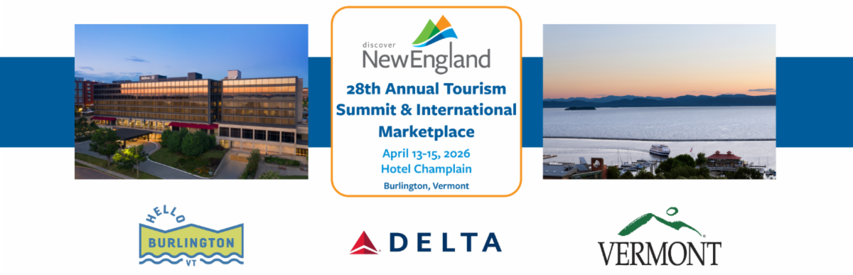 The next Annual Discover New England Summit & International Marketplace will take place April 13 – 15, 2026 at the Hotel Champlain in Burlington, Vermont. Registration will open on Wednesday, October 1, 2025, and early-bird registration closes on Friday, December 12, 2025. Learn more here.