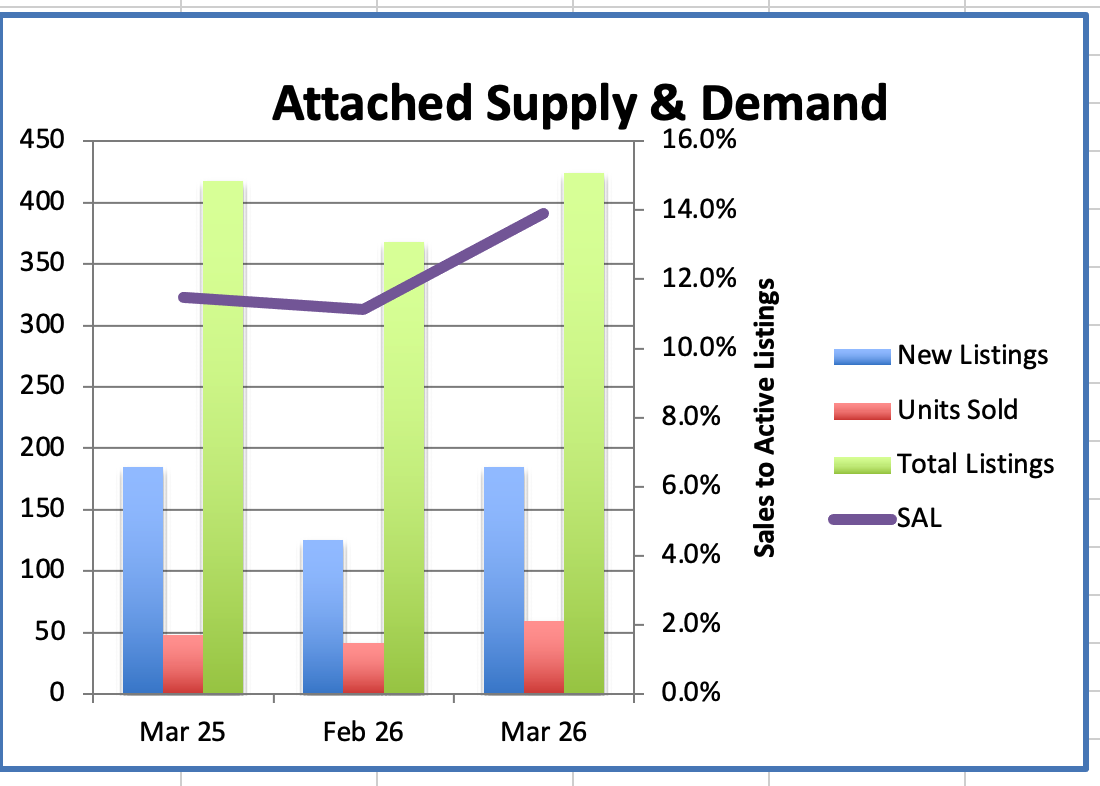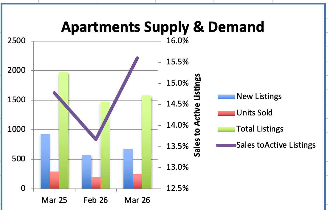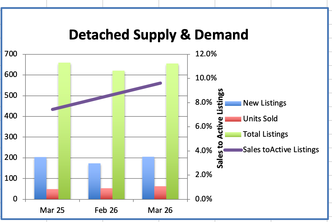 Historically, the market has cycled up in the spring, slowed down in summer, revived a bit in the fall and become quiet in the winter. Last year this cycle was disrupted by economic uncertainty, interest rate affordability, job security and global events that have combined to flatten out the demand for real estate. This year in February & March the demand has improved and the supply is relatively flat which is helping prices remain flat as well.