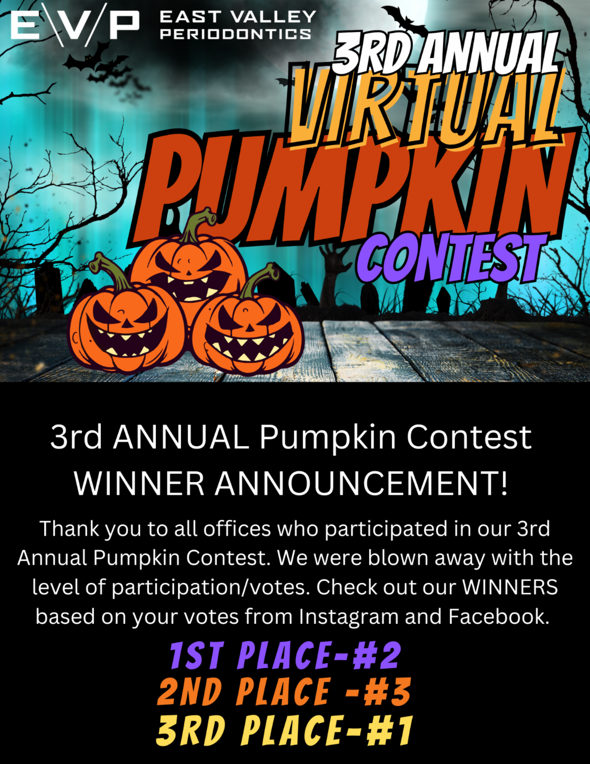 A huge thank-you to every office that joined in the fun, voted, and helped make this annual tradition such a hit. Your creativity and community spirit continue to make the EVP Pumpkin Contest something we look forward to every year.