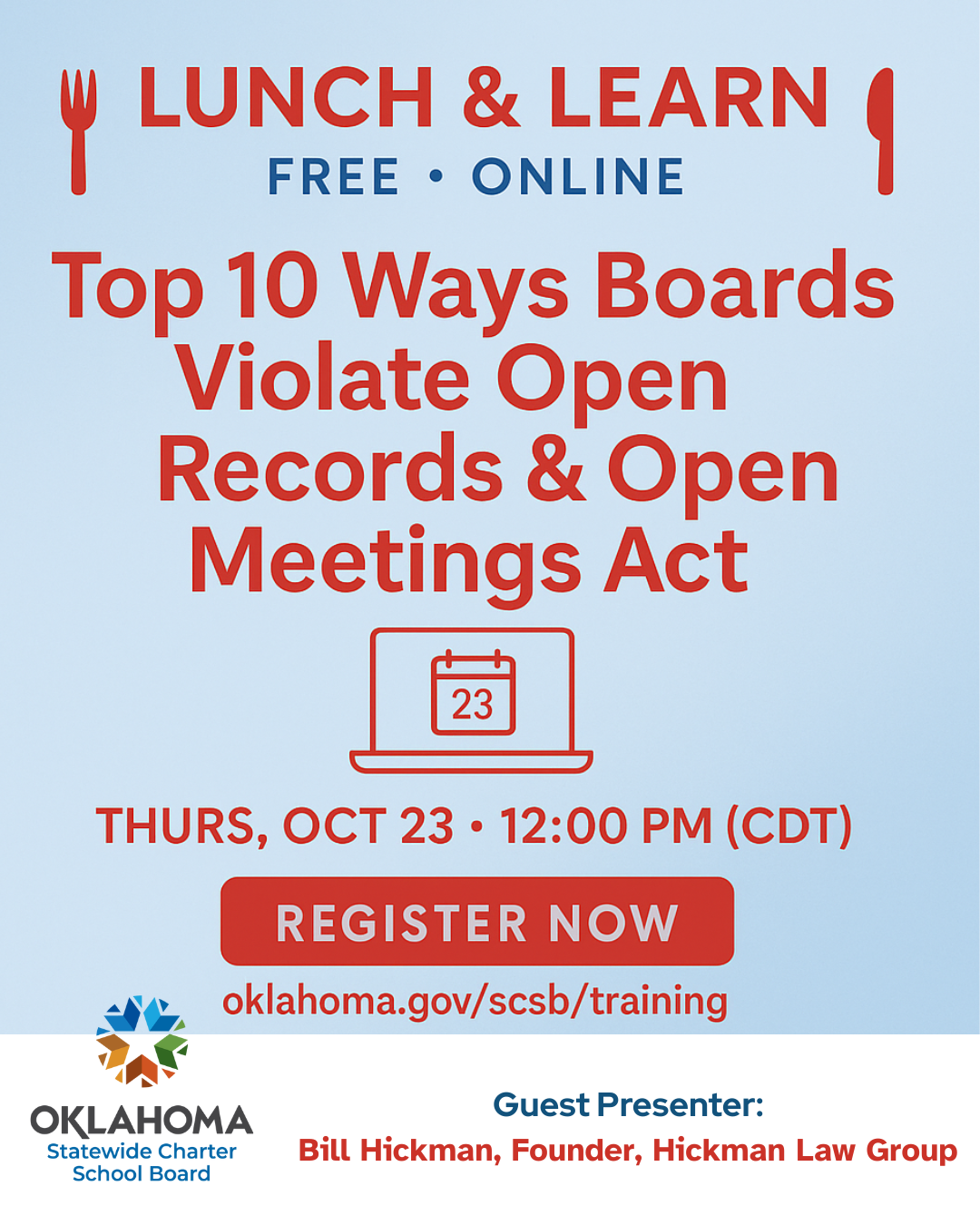Interested in being a sponsor for the 2026 conference? Contact Shelly Hickman at shelly.hickman@scsb.ok.gov.