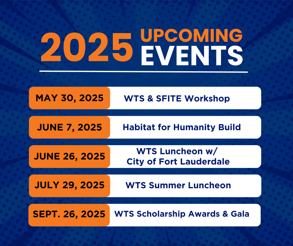 At WTS South Florida, our mission is to foster connections that drive collaboration, innovation, and success. I am continuously inspired by the incredible individuals serving on our executive board and committees. Each of you plays a crucial role in making our chapter dynamic, influential, and impactful. Thank you for your dedication, passion, and support.