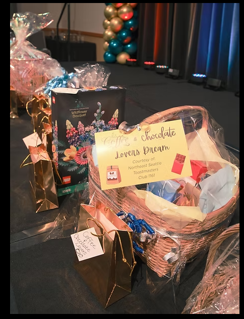 Shout out to clubs that have already donated baskets: Redmond Nights Toastmasters, Public Speaking Northwest, and Valley Club Juneau.
