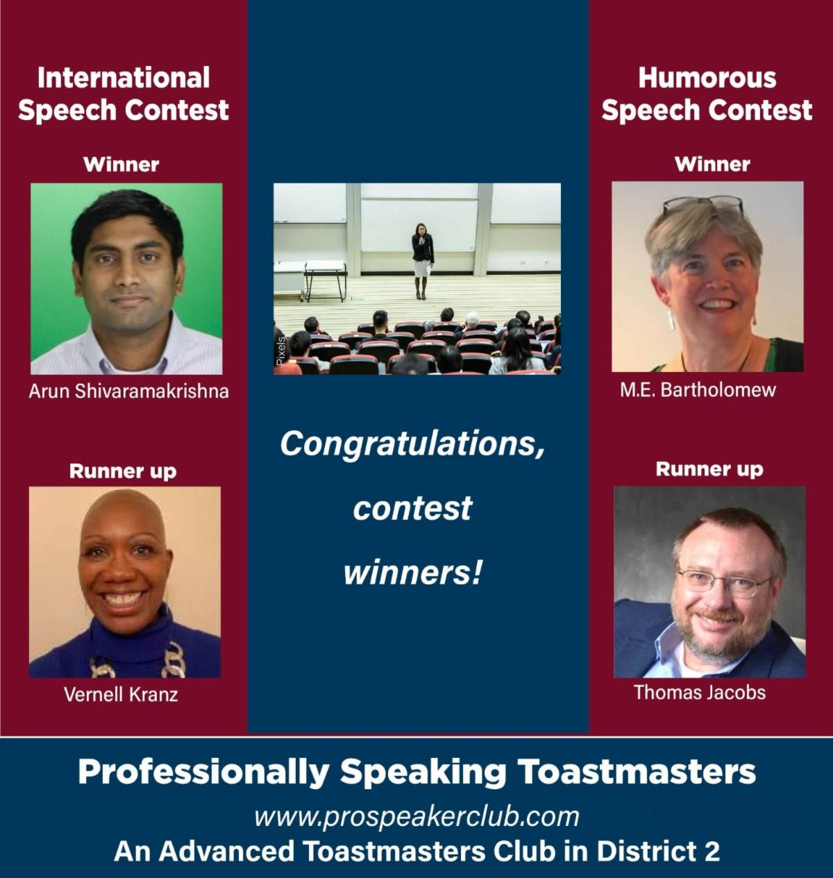 Stepping into a contest takes preparation, focus, and courage—and each Professionally Speaking contestant brought those qualities to the stage with professionalism and presence.