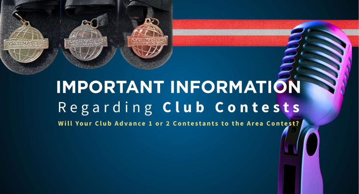 - Areas with four (4) or fewer clubs in good standing will advance the top two (2) contestants to the Area contest.