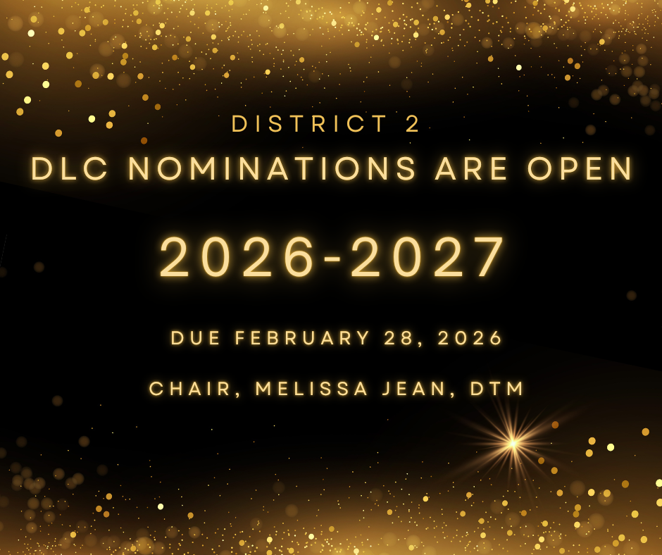 The District 2 Leadership Committee (DLC) is seeking dedicated members for the District Executive Team (serving July 1, 2026 – June 30, 2027). Available roles include: