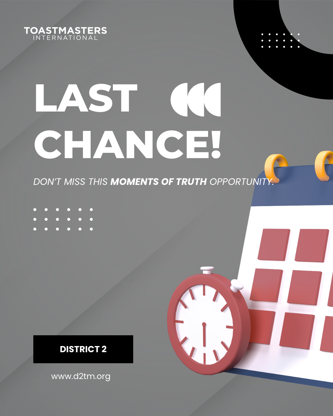 February marks the official beginning of District 2 Speech Contest season. As District Leaders, you are responsible for collaborating with your Contest Committee to ensure all contests adhere to the Toastmasters International Speech Contest Rule Book. To create a supportive environment where members can develop their communication and leadership skills, the following expectations and responsibilities have been outlined.