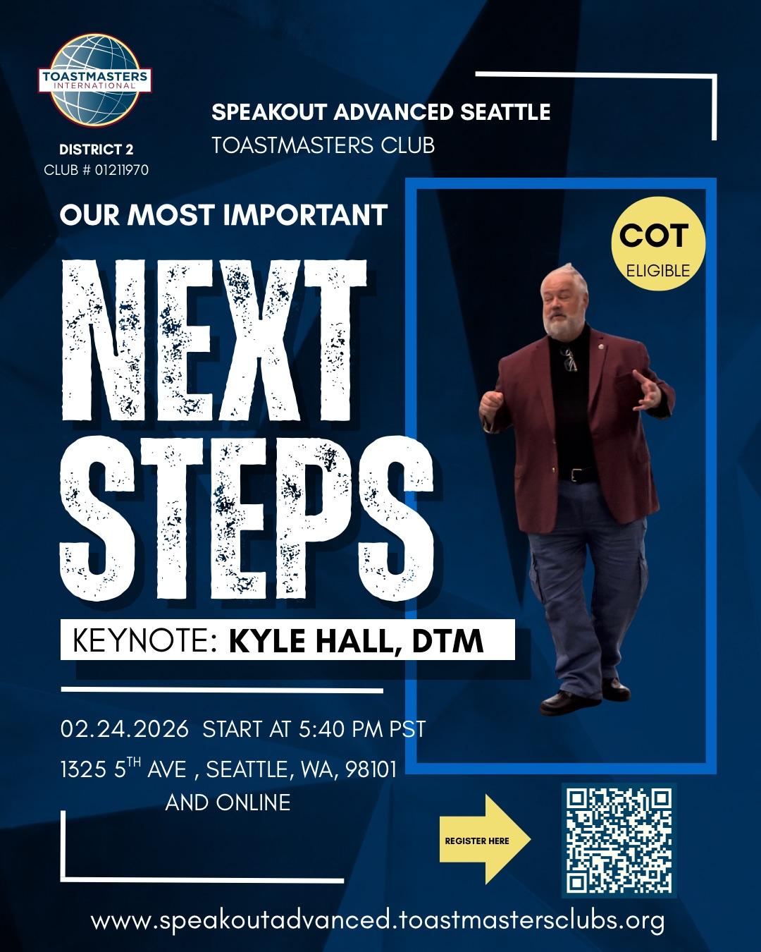 steps to our growth. Our keynote speaker, Kyle Hall, will tell us about his experience with Our Most Important Next Steps.