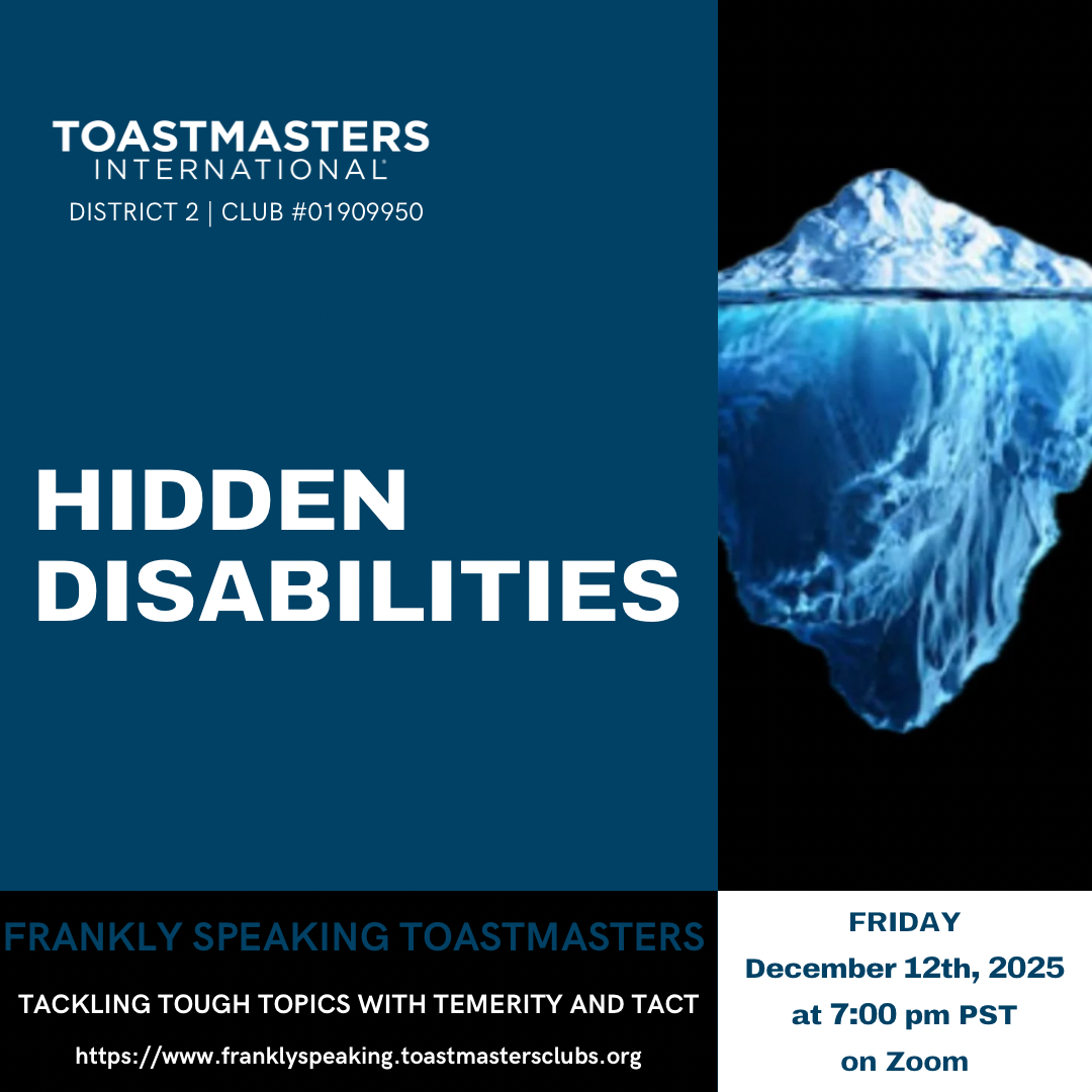 Explore Hidden Disabilities in a safe, compassionate environment where we practice public speaking on deeply meaningful themes.