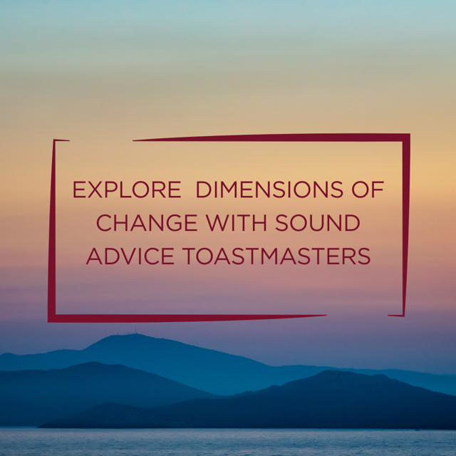 Join Sound Advice Toastmasters for an engaging discussion on navigating changes—big and small. You’ll walk away with insights and practical strategies to help you lead, adapt, and thrive in any situation.