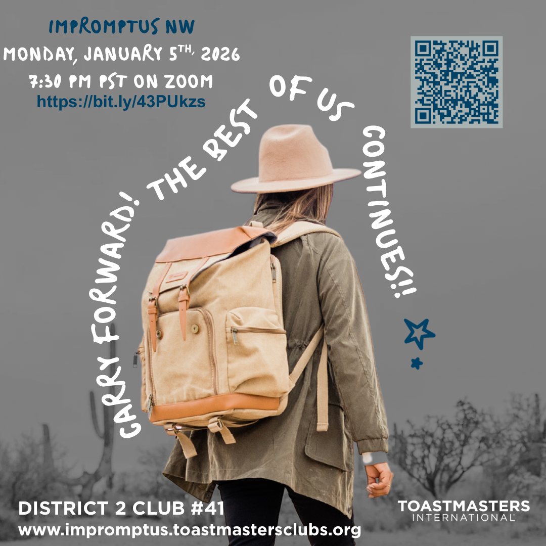 Join Impromptus NW for an extemporaneous consideration of Carrying Forward on the evening of Monday, January 5th, 2026 at 7:30 pm PST on Zoom.