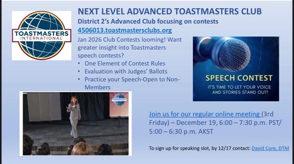 VPPR, Public Speaking Northwest Toastmasters