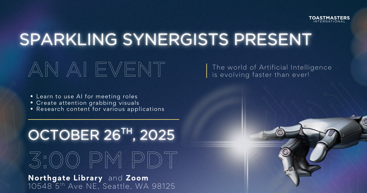 This session is the perfect opportunity to ask questions, gain valuable insights, and enhance your Toastmasters experience, whether you’re new to Pathways or seeking targeted advice.