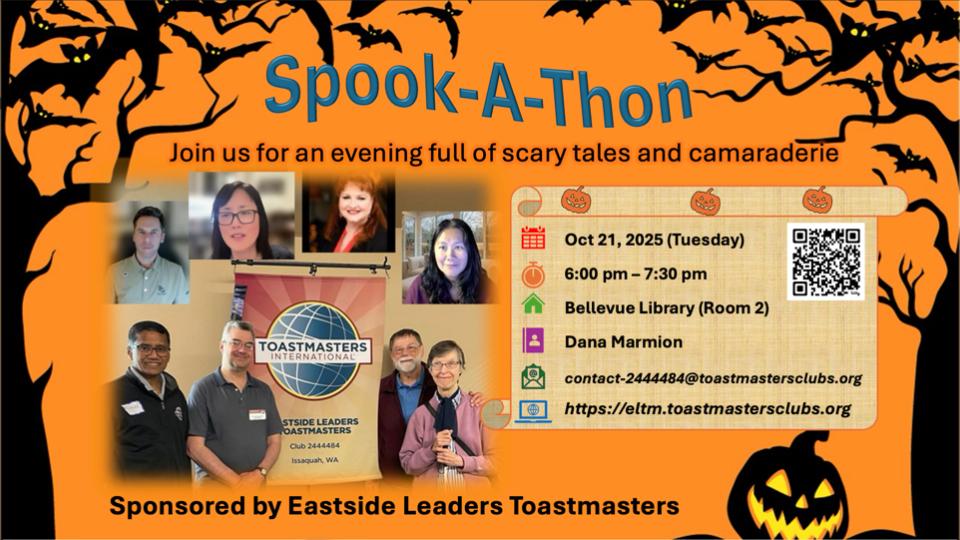 Join us for an evening full of Scary Tales and Camaraderie tomorrow Oct 21st (Tue) - 6 - 7:30 pm PDT At Bellevue Library (Room 2).