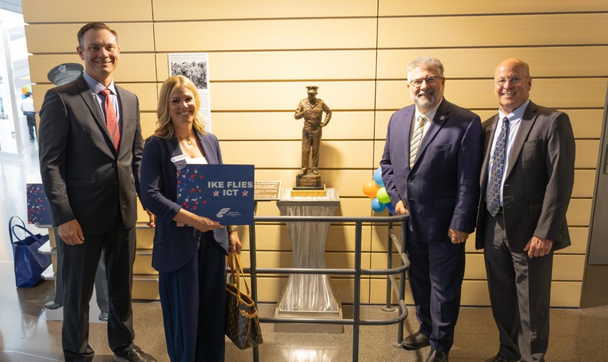 Out and About with Commissioners | | Can you believe it's been 10 YEARS since the Wichita Dwight D. Eisenhower National Airport terminal opened? Commissioners attended the celebration, which featured the unveiling of a statue of President Eisenhower, created by artist Jim Brothers. This is a scale model of the full bronze sculpture that stands at the U.S. Capitol building. | | |