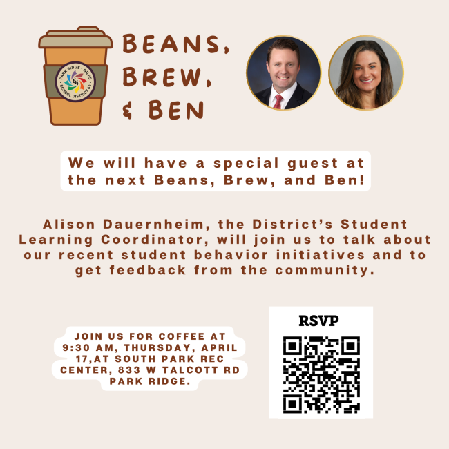 Alison Dauernheim, the Districtโs Student Learning Coordinator, will join us to talk about our recent student behavior initiatives and to get feedback from the community.