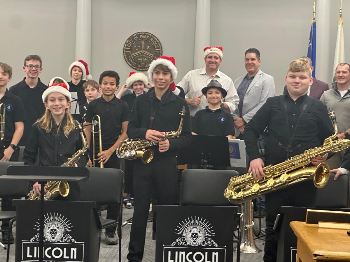 On Monday, December 16, the talented musicians of the Lincoln Middle School Jazz Band brought their vibrant sounds to the City Council meeting at Park Ridge City Hall. The group, under the direction of Mr. Connor Yoon, showcased their hard work and musical skills in a lively performance that left an impression on council members and community attendees alike.