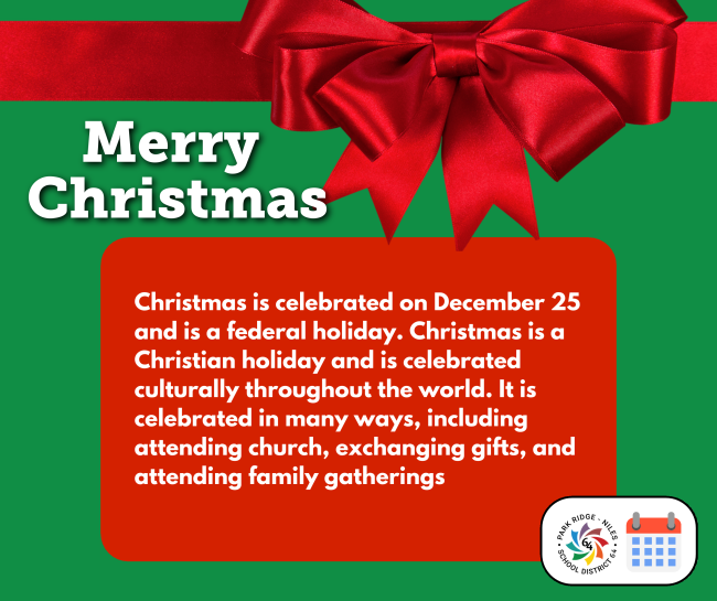 Christmas is celebrated on December 25 and is a federal holiday. Christmas is a Christian holiday and is celebrated culturally throughout the world. It is celebrated in many ways, including attending church, exchanging gifts, and attending family gatherings. | |