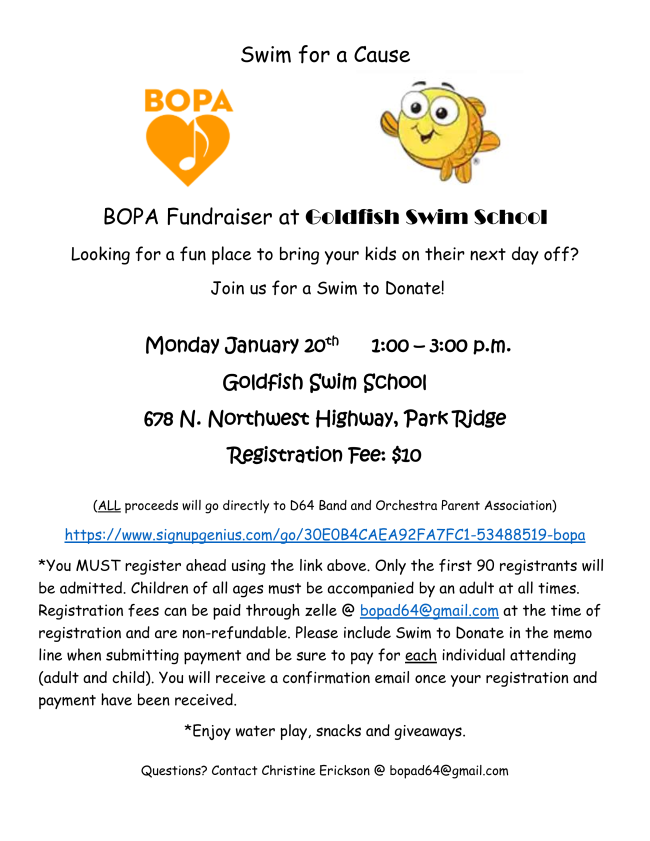 Band Orchestra Parents Association (BOPA) Fundraiser at Goldfish Swim School