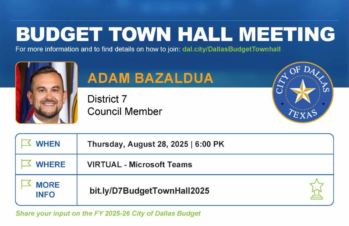 Upcoming Agenda Item #25-2514A Substantial Amendment No. 1 to the FY 25-26 Action Plan, 5 Year Consolidated Plan and Budget: In this memo you will find details on the August 27, 2025 agenda item authorizing execution of the Financing Agreement with the Texas Water Development Board for the fourth year of a five-year, $170 million SWIRFT funding commitment supporting Dallas Water Utilities’ water main replacement program. This year’s $34 million bond issuance will provide low-cost financing through TWDB’s AAA-rated program, with Council ordinance approval scheduled for October and bond closing in December 2025.