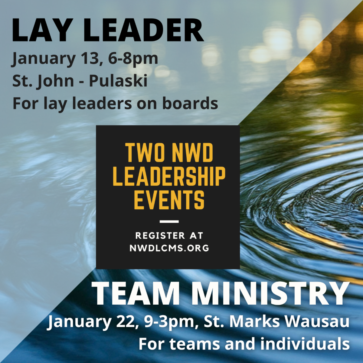 2026 LCMS Convention Assessment | Synod has now shared most of the information each district needs to create the congregational assessment for the triennial LCMS Convention, held in July 2026. The assessment covers the cost of attendance for the 37 NWD members chosen to attend. Congregations will be invoiced by the North WI District LCMS later this spring, using the communicant member number reported to Synod during their annual gathering of statistics at the end of 2024 or the last year you reported them, not including the current year. For budget planning, the number per communicant member will be $2.85. Please contact Lori at the NWD LCMS office with questions at lori@nwdlcms.org. | | | |